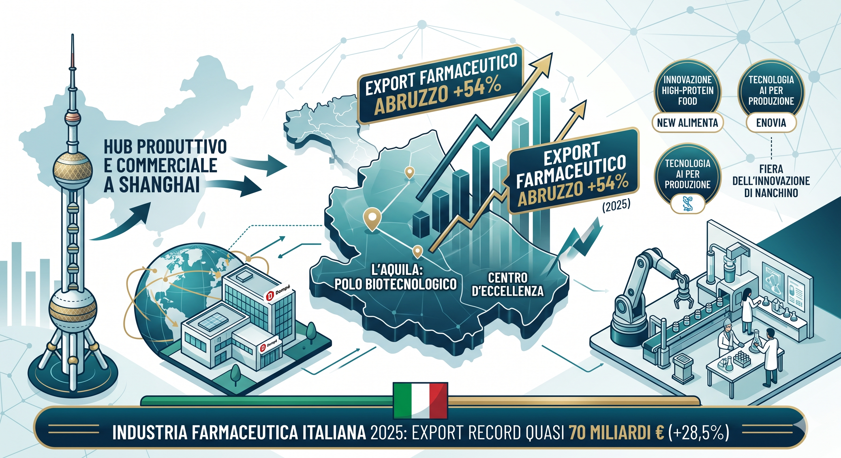 Tra i protagonisti di questa storia c’è Dompé, azienda familiare nata a Milano ma radicata a L’Aquila, dove ha sviluppato un centro di ricerca biotecnologico all’avanguardia. L’impegno nel territorio si accompagna a una visione globale: la presenza a Shanghai non è solo una vetrina commerciale, ma un ponte verso il mercato cinese, uno dei più rilevanti per l’export farmaceutico italiano (nel 2025 l’Italia ha esportato verso la Cina per oltre 2,5 miliardi di euro nel settore). La strategia di Dompé unisce innovazione scientifica e apertura internazionale, dimostrando che un’impresa con radici locali può competere sui mercati globali.